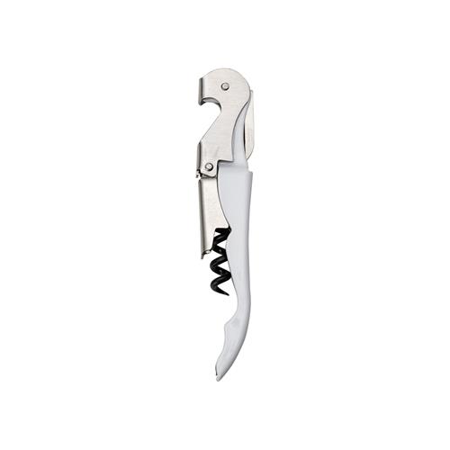 Saca-rolhas metálico de 2 estágios com acabamento fosco. Contém abridor de garrafa, lâmina de corte e saca-rolhas.